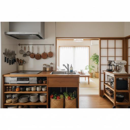 キッチンを雑多に見せない秘訣は、道具の数そのものではなく「視線のコントロール」にあります。