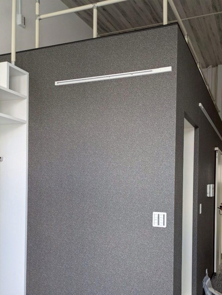 窓埋めには耐久性と防火性に優れたケイカル板を使用し、見た目もすっきり仕上げました。照明はODELICのプラグタイプブラックOS256110Sを採用。シンプルでスタイリッシュなデザインが空間を引き締めます。交換LEDランプは昼白色を選び、自然光に近い明るさで作業や日常生活を快適に照らします。