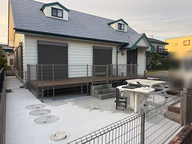 キッチンはLIXIL シエラSを設置しました。シンプルで使いやすい設計が特徴のシステムキッチンで、収納力もしっかり確保されており、日々の料理や片付けがしやすい仕様です。デザイン性にも優れており、空間をすっきりとした印象に仕上げてくれます。テラスはLIXIL 樹ら楽ステージを設置しました。木のような自然な風合いを持ちながら、樹脂と木粉を組み合わせた素材で腐食やシロアリの心配が少なく、耐久性にも優れたウッドデッキです。お手入れもしやすく、長く快適に使用できます。まわりはメッシュフェンス・LIXIL ハイグリッドフェンスN8型T-15で囲い、安心して過ごせるプライベート空間をつくりました。お庭時間がより楽しく快適になりました