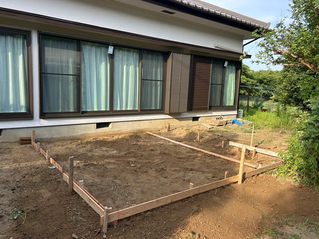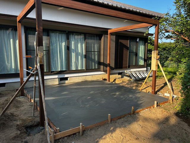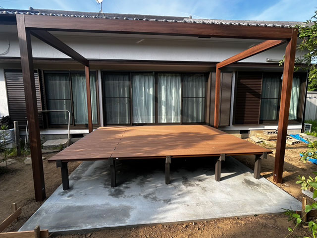 施工内容 | ウッドデッキ設置、水栓設置、キュウイ棚設置 |
