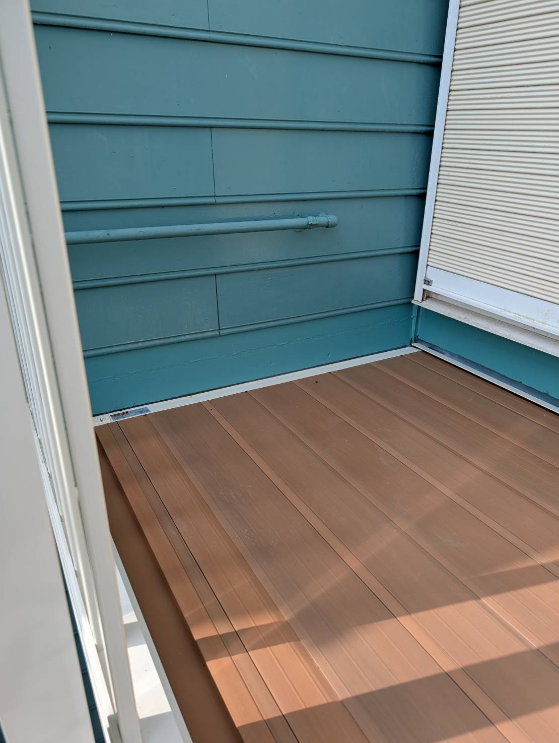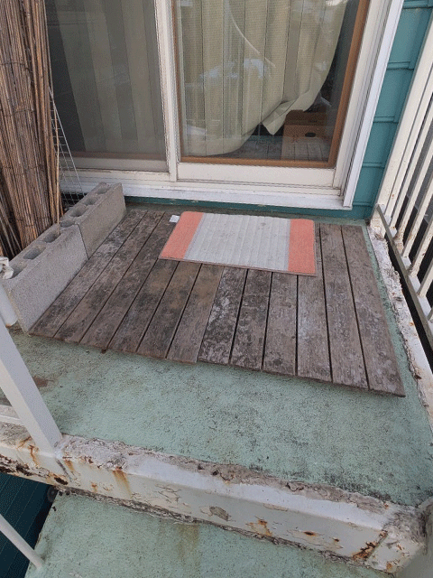 螺旋階段は経年によりサビが目立っていたため、既存階段を丁寧にケレン処理し、さび止め塗装を施したうえで上塗りを行い、美観と耐久性を回復しました。併せてデッキの改修工事も行い、「ビューステージHスタイル(1間×4尺)」を使用。安全性と美観の整った素敵な螺旋階段へ生まれ変わりました。