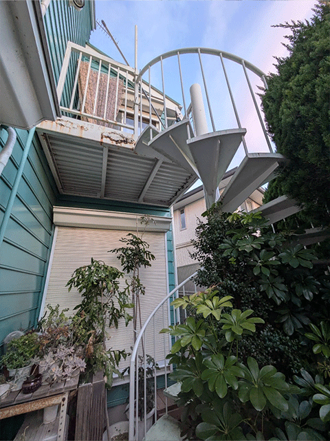 螺旋階段は経年によりサビが目立っていたため、既存階段を丁寧にケレン処理し、さび止め塗装を施したうえで上塗りを行い、美観と耐久性を回復しました。併せてデッキの改修工事も行い、「ビューステージHスタイル(1間×4尺)」を使用。安全性と美観の整った素敵な螺旋階段へ生まれ変わりました。