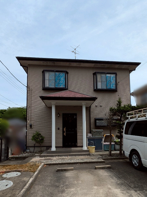 外壁には触ると白い粉がつくチョーキング現象、経年劣化による色褪せが見られました。屋根にも同様の症状の他雨じみが見られました。丁寧に高圧洗浄をかけ、雨漏りの心配がある箇所はコーキングを打ち直し、各部塗装をしっかり行いました。(使用した塗料 外壁:ユーロテックス 屋根:ルーフピアニ)